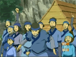 With the climax/battle over, all that’s left to say is that Yue gives up her life to save the moon spirit, she shares a tearful goodbye kiss with Sokka that would probably mean a lot more had she been onscreen longer than 8 minutes, and Aang's batteries die out so he stops glowing. He accepts his role as Avatar when the entire Northern Water Tribe (including